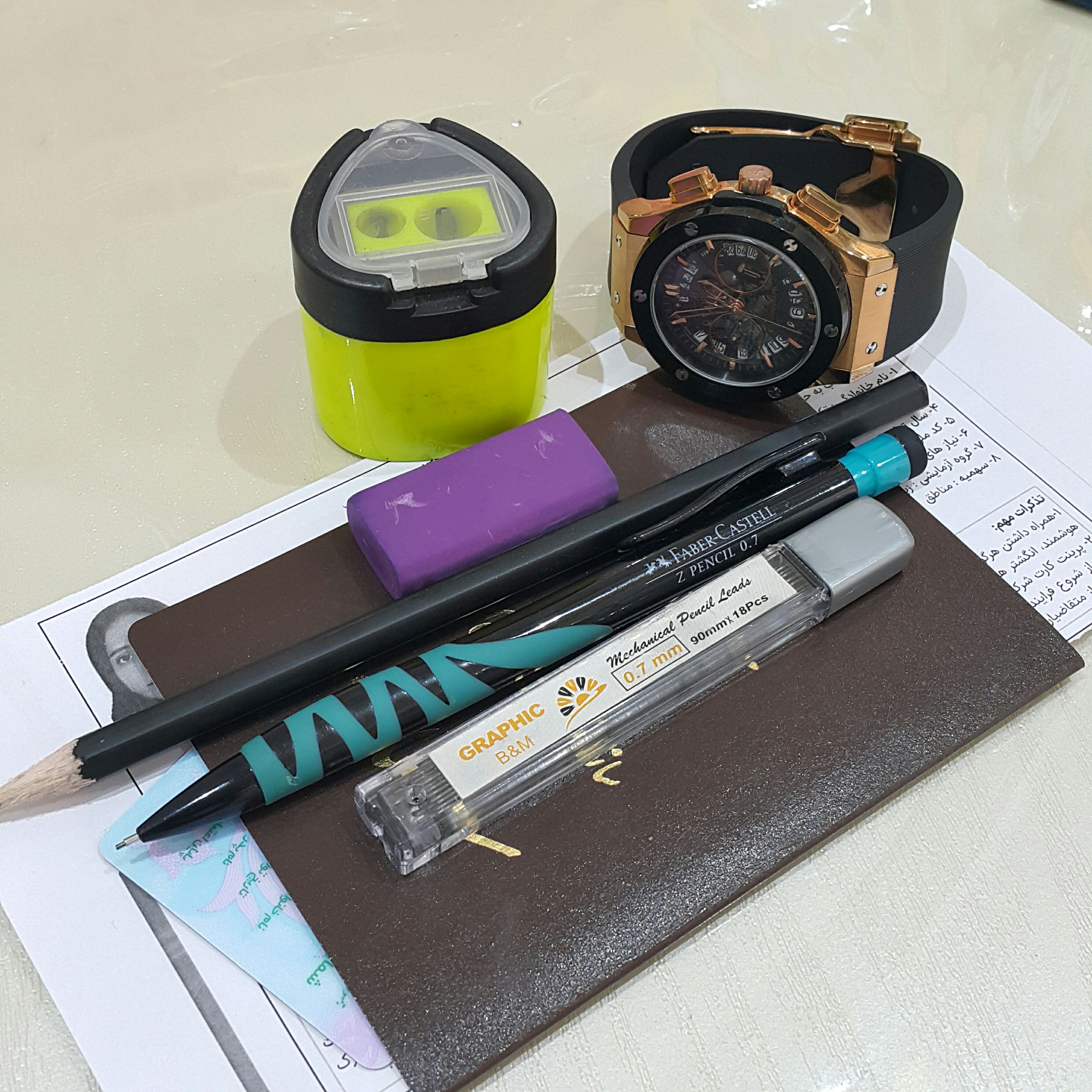 2 تا مداد و اتودم و پاکن و نوک و تراش